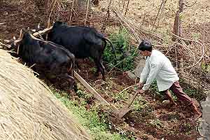 small terrace of land needed to be plowed. All three