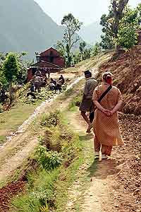 The village, perched on this steep hillside, has several trails running through it. Here, as we head towards the western edge of the village, we came to a meeting of many men.
