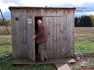Happy to be here, Jim G. and Jim C. posed for a photo outside their next form of transportation to the village. Notice the preview of mud on the van...